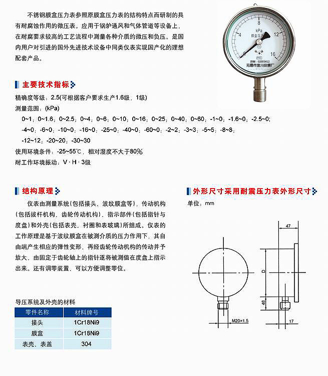 Y-M系列隔膜压力表